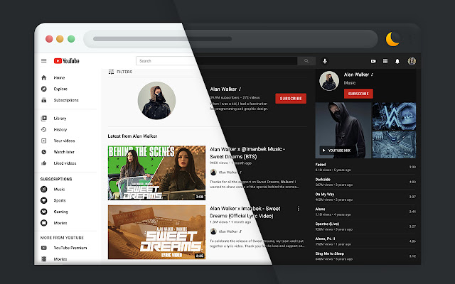 YouTube 和夜班的深色主题使 Youtube Black 夜班无需您进行任何必要的操作。只需安装一个扩展程序即可在 Youtube 上应用暗模式。 Dark Youtube Skin 夜班是在最新的 Youtube 更新后唯一有效的扩展。