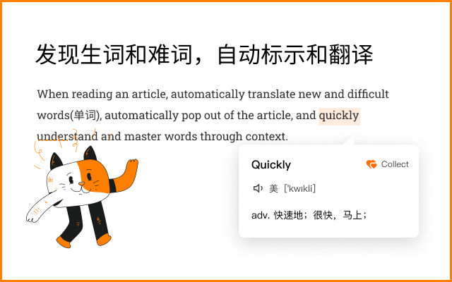 在日常浏览自己感兴趣的网页内容的同时,快速读懂文章,更快更高效的掌握生词,从此背诵单词不再是一种任务。