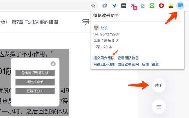 微信读书助手,浏览公众号、听书、一键组队、导出备份笔记