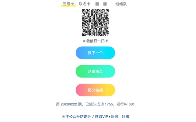 前往微信读书官网(weread.qq.com),扫码登录之后,助手就能展示用户相关信息,然后即可点击参与无限卡组队。同时也可以前往组队网站(weread.qnmlgb.tech)查看更多组队信息。组队需排队等待,具体规则可在组队网站上查看