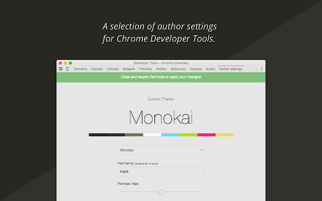 • 重新加载开发者工具。主题选择、字体大小和字体系列可在“作者设置”DevTools 选项卡中配置