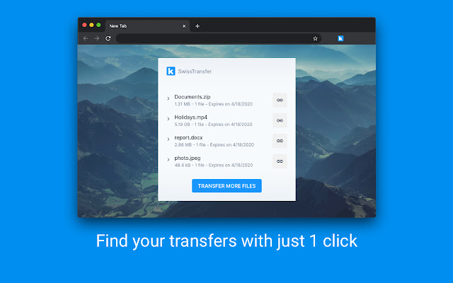 SwissTransfer 允许您一次发送最多 50 GB 的数据,免费且无需注册。您的转账最多可以保留 30 天。