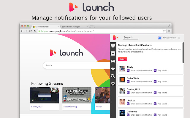 在 Twitch 和 YouTube 游戏上查找新游戏和直播。当您最喜欢的流上线时收到自动通知。