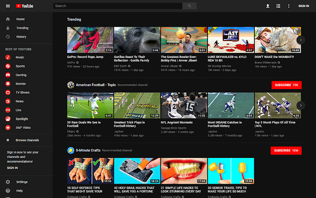 YouTube 设计在深色和浅色之间快速变化。只需一键。