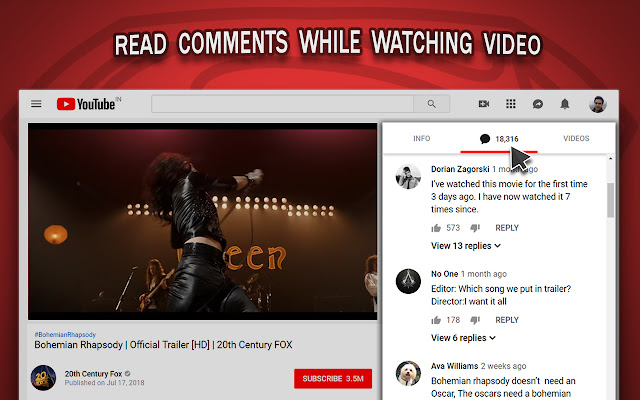 ✔ 在观看 YouTube 视频时阅读评论。有时评论和视频一样好,那么为什么不同时查看两者呢?