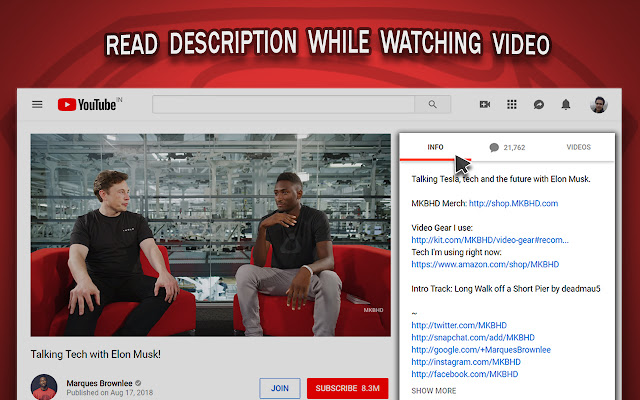✔ 在观看 YouTube 视频时阅读视频说明。单击“信息”选项卡以打开视频说明。