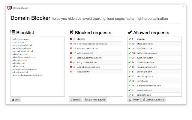 ⭐️ 通过阻止不必要的域(请求),您可以节省流量并使页面加载更快!