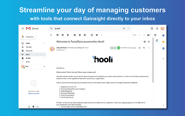 访问 Gainsight 电子邮件模板并直接从 Gmail 轻松将电子邮件同步到时间轴,以节省您一天的时间和精力。