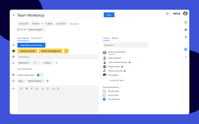 Miro for Google Calendar