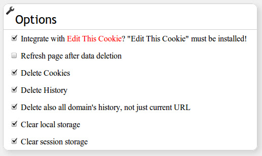 单击该图标,一切都消失了……不仅是 cookie,还有历史记录和 html5 客户端存储(本地存储和会话存储)。我也在努力删除鲜为人知的 Flash cookie,但看起来有一些顽皮的工作要做。