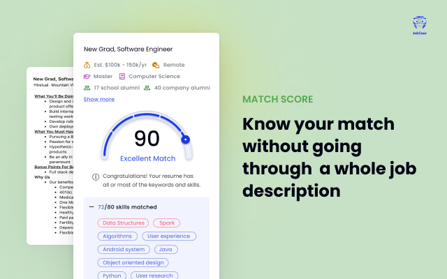 ? 获得与您的简历和给定的职位描述的即时基于分数的匹配,以确保您的简历通过 ATS 关键字机器人。