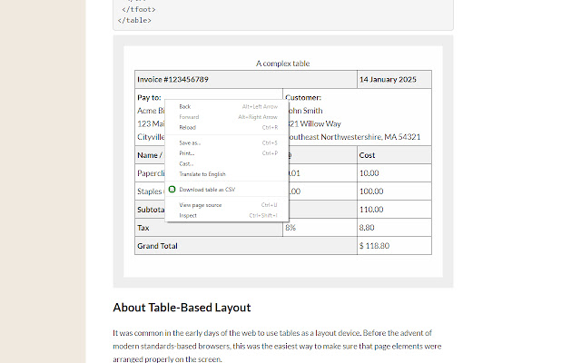 右键单击表格,然后从上下文菜单中选择“以 CSV 格式下载表格”。