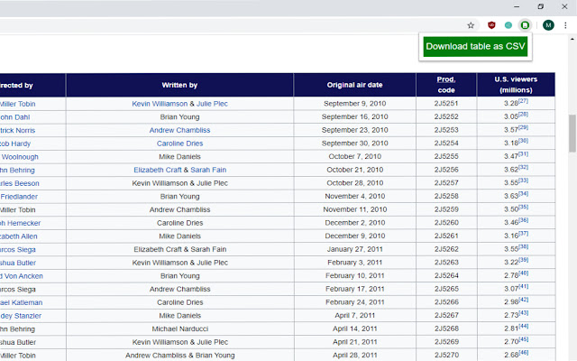 该扩展程序以 MS Excel 样式 CSV 格式下载 HTML 表格。