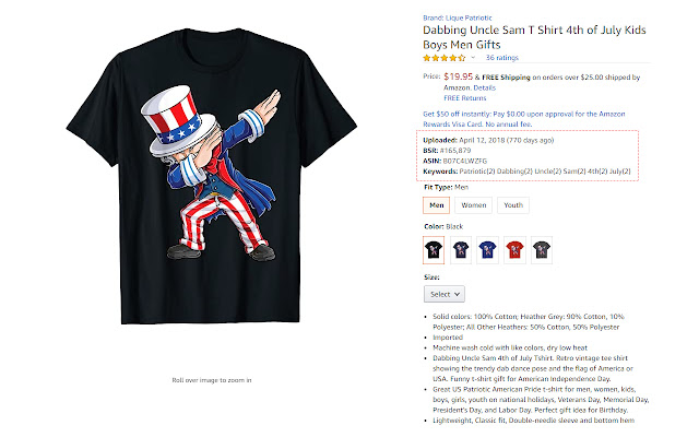 - 在 Amazon.com 上显示 BSR、上传日期、父 ASIN 和主要关键字(测试版)。