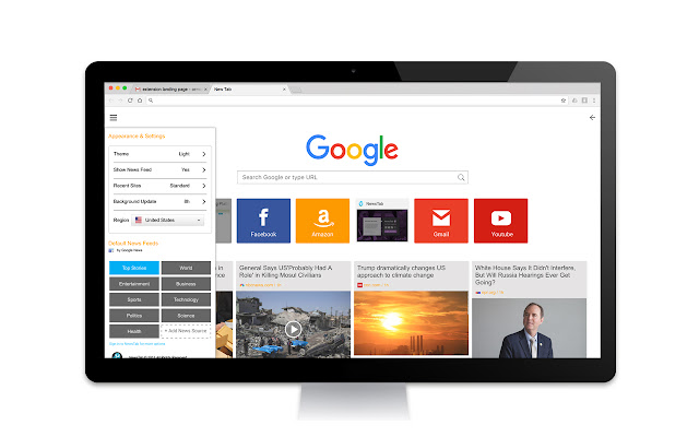 NewsTab 是流行的新闻阅读器,现在可以作为 NewTab chrome 扩展程序使用。使用 NewsTab 扩展程序,您将在打开的每个新标签页中获得您所在地区的头条新闻(支持 130 多个地区和语言)……一切都以精美、图像丰富的体验为特色。选择默认新闻类别(头条新闻、体育、科技、娱乐等)或简单地添加任何新闻主题(例如迈克尔·乔丹)或新闻来源(例如 cnn)。