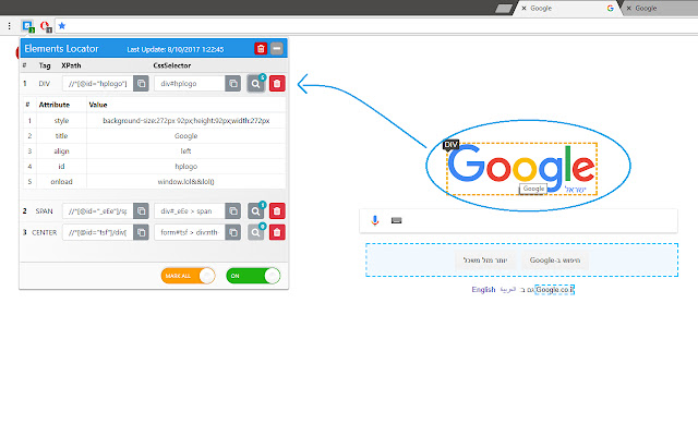 并为每个保存的元素显示 XPath 和 CSS-Selector。
