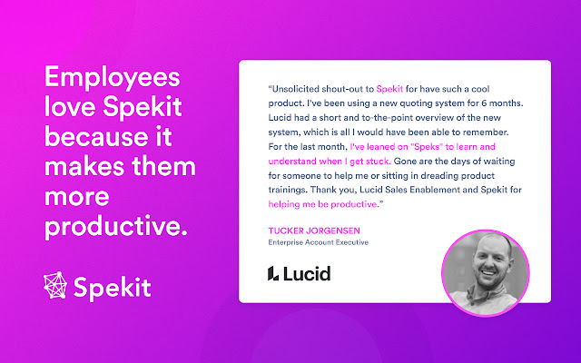 Spekit 是应用程序内的支持和培训工具,旨在帮助您快速获得问题的答案,轻松访问最佳资源,以便您可以专注于工作。