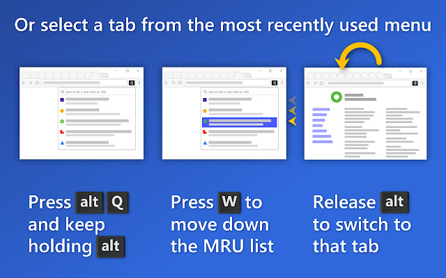 ➤ 要从 MRU 列表中选择最近的选项卡: