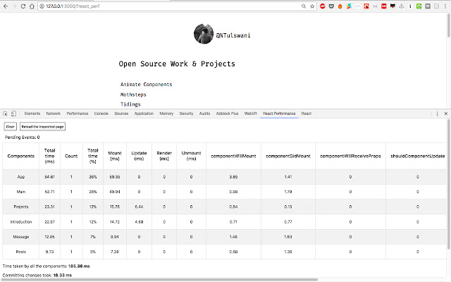 用于检查 React 组件性能的 devtool 扩展。