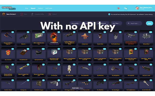 - 我们已经看到我们的许多客户被劫持者欺骗,劫持者控制了他们的 Steam 帐户,这是完全不必要的。此扩展程序将确保您在将商品存入 Mannco.store 时不会被骗。