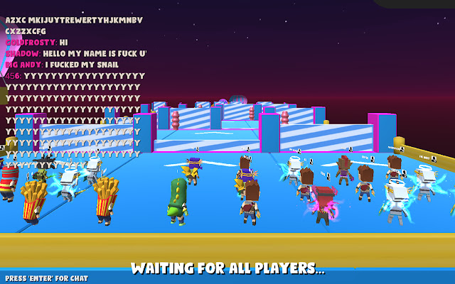 享受秋季男孩 - 跑酷多人游戏。选择一个角色,游戏就会选择你的房间和对手。一开始,已经有几个男生聚集了。要赢得“坠落”,您需要先走有障碍的路线。打破围墙,向前奔跑。跑酷的更多追随者等待着更多的考验。