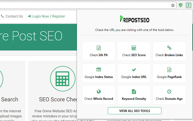 适用于 Chrome 的 Pre Post SEO 是一个免费扩展程序,它允许您使用 9 个免费 SEO 工具之一快速检查您正在访问的 URL。此外,您只需单击一下即可直接访问 ppostseo 提供的所有 40 多种工具。