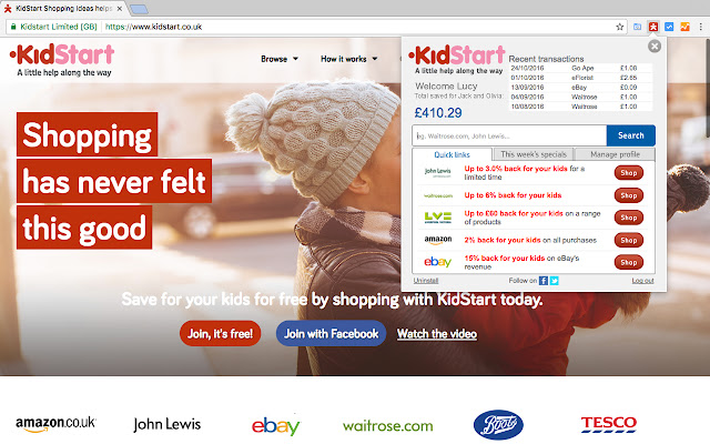 KidStart Savings Prompt 可帮助您确保在网上购物时永远不会忘记为您的孩子储蓄。