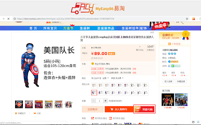 2. 代购 - 您可以在淘宝/天猫商品的页面点击 “我要代购”,就可以直接添加商品到MyEasy86购物车。