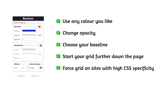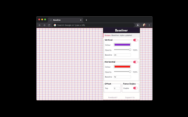 Baseliner 添加了水平和垂直线,以帮助您将网格与任何网站对齐。