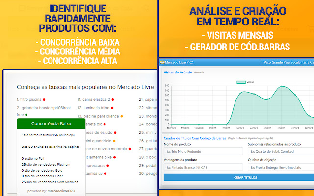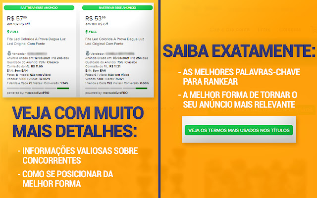 Mercado Livre PRO 工具 - 跟踪您的竞争对手并利用您的结果