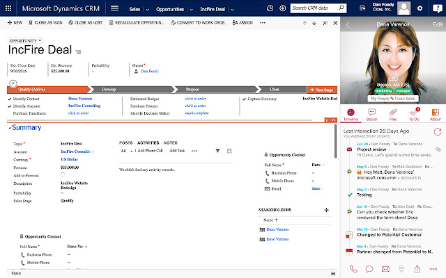 • 在您的 CRM 旁边查看人员、公司、项目和交易的上下文
