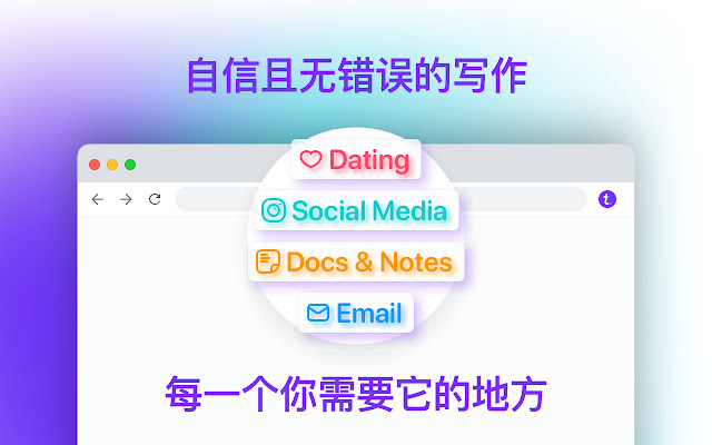 选择 Typeright Chrome 扩展程序或专门的 iOS 和安卓应用程序,即可随时随地无误写作。无论你是想用自己专业的写作技巧让同事另眼相看,还是在约会应用中输入完美的无拼写错误的句子:我们都能满足你的要求!