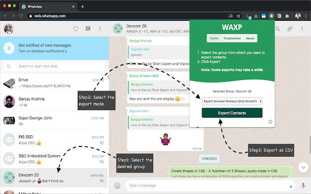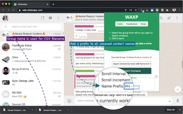 将 WhatsApp 群组、聊天列表或标签中的所有或仅未保存的联系人导出到 Excel 文件。