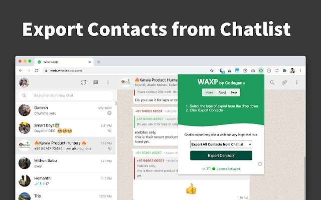 ?? 获取许可证代码 - https://gumroad.com/l/WhatsApp-Contacts-Exporter