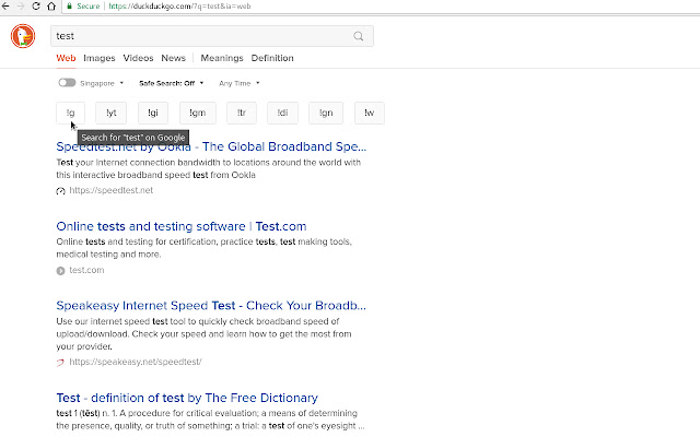 DuckDuckGo !bangs 允许您直接在数千个站点上进行搜索。这个扩展增加了两个功能。