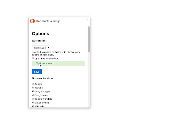 - 将 !bang 按钮添加到 DuckDuckGo 搜索结果页面。