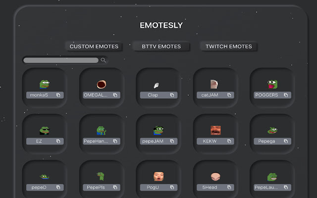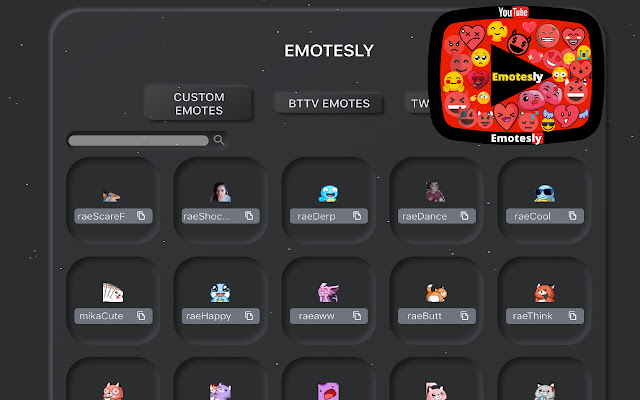 自定义表情专为 Valkyrae 的 Youtube 频道制作。她是世界上最大的女性主播之一,也是 Emotesly 的灵感来源。她在 Youtube 上直播。而Youtube的功能,缺乏表情的支持,因此在YT Stream聊天中没有表情文化。 Youtube 的审核工具也缺乏推动积极聊天的能力。这给出了一个想法,即支持 Youtube 聊天的自定义表情符号以及对 Youtube 的 twitch 和 BTTV 表情符号的额外支持