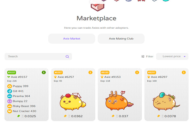 显示在市场中悬停在 axie 上时在游戏中发现的特征数量