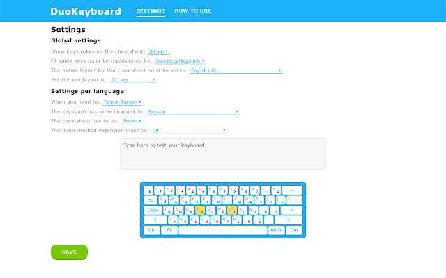 有关更多说明,请在安装此插件后单击 DuoKeyboard 图标查看选项页面中的“如何使用”。