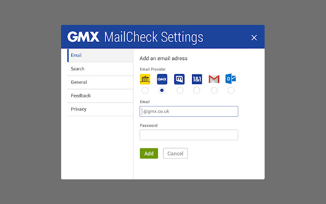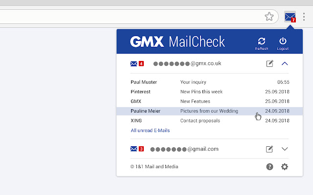 使用 GMX.com MailCheck 扩展程序,您只需使用 GMX.com 凭据登录一次,即可快速、简化地访问您的收件箱。从那时起,您只需单击浏览器中的信封图标即可即时访问您的所有电子邮件(例如 gmx.com、mail.com、Outlook Live)。无需再在搜索引擎中搜索您的电子邮件提供商,然后直接进入登录页面,最后输入您的登录详细信息——使用 GMX.com 的 MailCheck 轻松一键登录即可跳过所有这些。