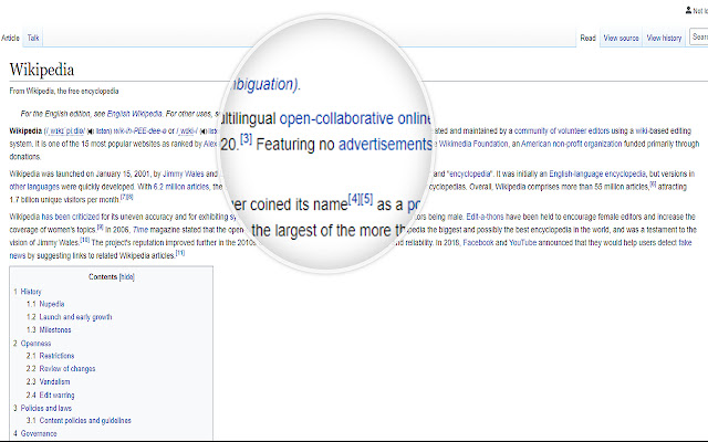 此放大镜扩展名显示了放大镜半径内的放大区域,而不会影响网页的其余部分。