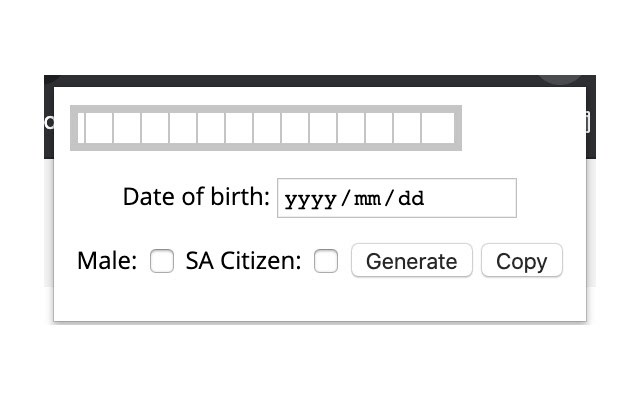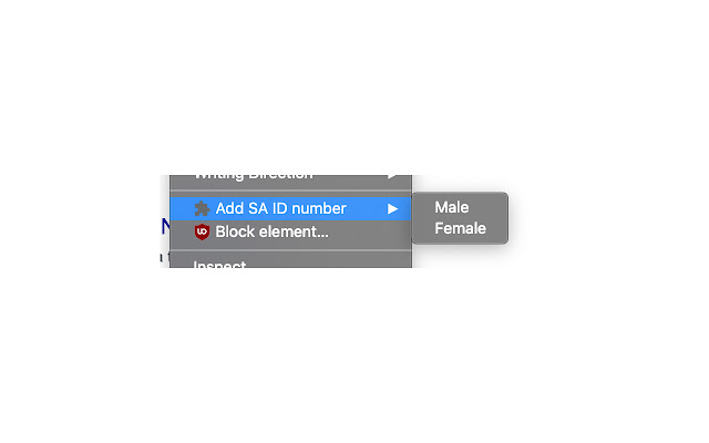 生成一个南非身份证号码,通过扩展程序或上下文菜单进行验证,并可以分析身份证号码。