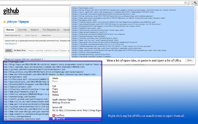 • 在任何网页或文本区域中选择 URL(或搜索词)列表,然后在新选项卡中将它们全部打开