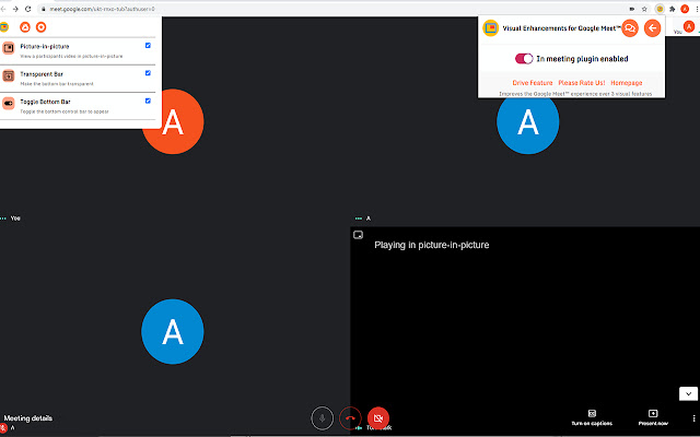 我们免费的Google Meet™视觉增强功能使您可以快速启用/禁用Google Meet通话的一组视觉效果。