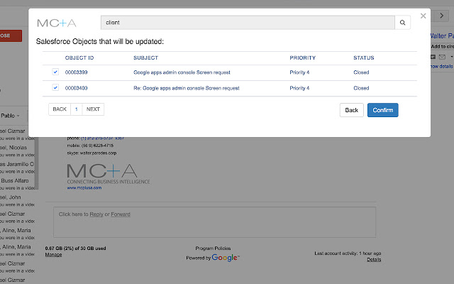 此扩展程序向您的 Gmail 页面添加了一个按钮,只需单击几下,即可轻松地将您收到的和/或发送的电子邮件附加到 Salesforce Objects。