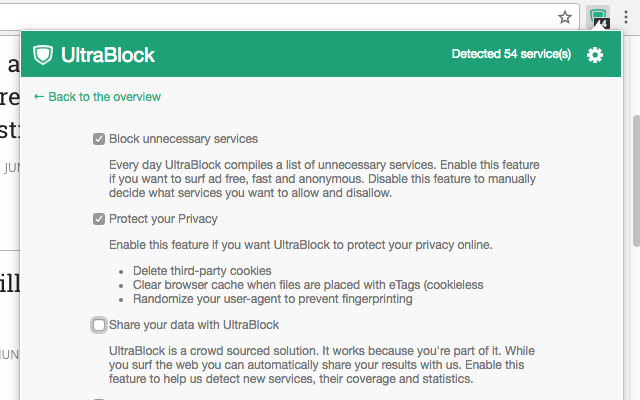 UltraBlock 以尽可能多的方式保护您的隐私。它首先阻止来自 UltraBlock 跟踪器数据库中标记为“不必要”的服务的内容。这会立即清除超过 80% 的跟踪器,只留下未知或新的跟踪器。为了确保即使这些也无法跟踪您,UltraBlock 会在每次访问网站后清理第三方 cookie 和您的浏览器缓存。最后,为了让服务更难跟踪您,UltraBlock 会在每次网站访问时随机分配您的用户代理。