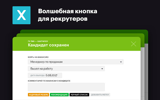 神奇按钮允许招聘人员在 Huntflow 中保存来自俄罗斯、独联体和世界领先工作网站和社交网络的候选人的简历和个人资料。
