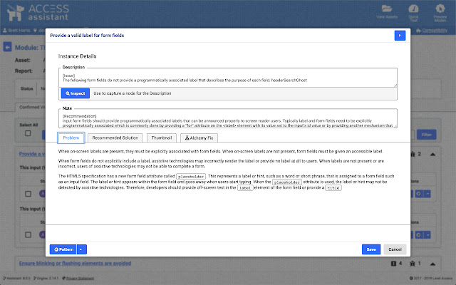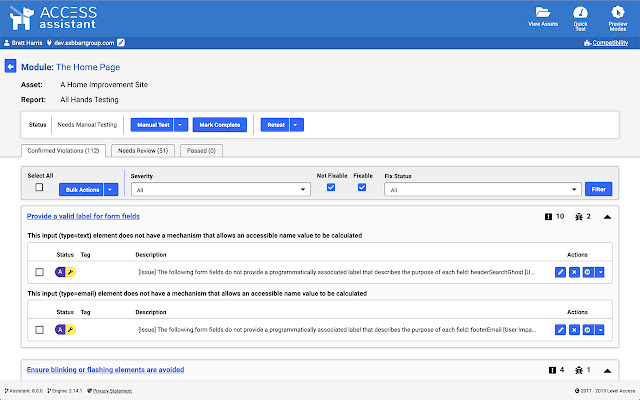 只需在任何网页上运行快速测试,即可查看页面上所有可访问性违规的详细信息以及补救指南。测试结果还可以保存到 Level Access 的无障碍管理平台 (AMP),您可以在其中报告您网站随着时间的推移的无障碍合规性。