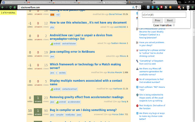 这是一个 chrome 扩展,允许您使用常规 expssion 搜索页面的文本。请注意,由于网页的编写方式,很难使此扩展程序在 100% 的页面上工作。如果您有任何问题,请在 Github 问题页面上报告:https://github.com/gsingh93/regex-search/issues。