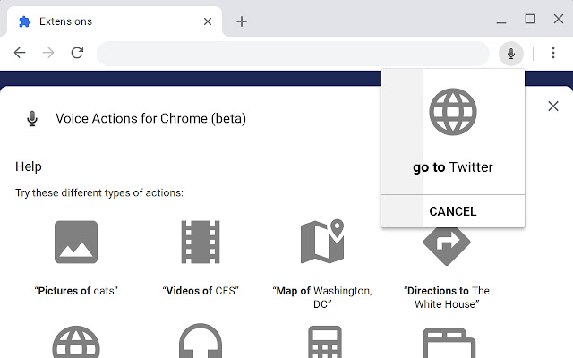 Chrome 的语音操作可让您通过语音控制您的 Chrome/Chromium 浏览器。它类似于(但不附属于)可用于 Android 和 iOS 的语音操作和语音搜索应用程序,但它是第一个可用于 Chrome 的此类应用程序。